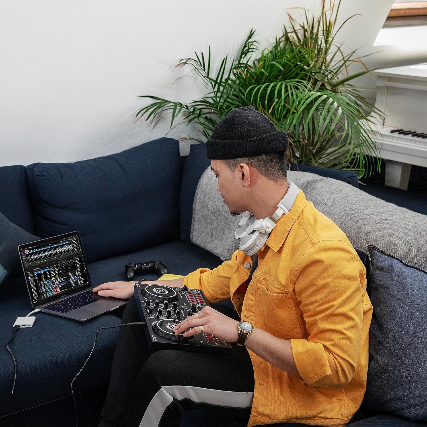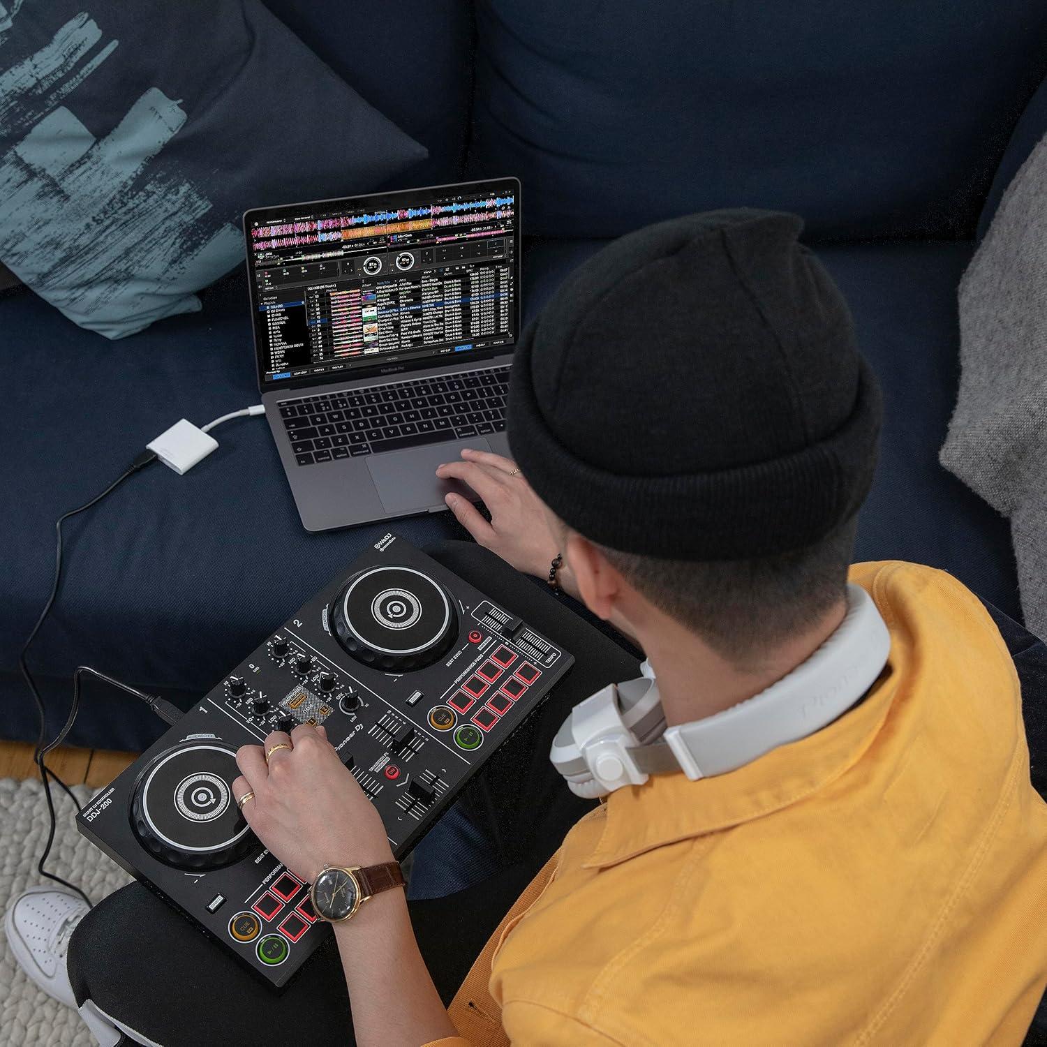 Designed with beginners and hobbyists in mind, the smart DJ controller is compatible with a variety of music streaming apps and offers access to features that demystify many aspects of the craft. You can use the DDJ-200 to mix tracks at home or on the go.